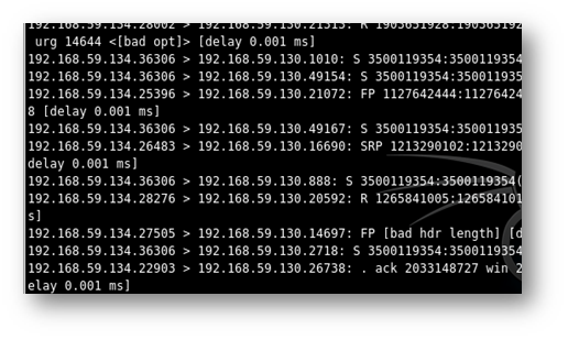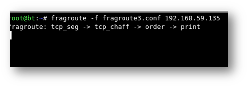 Figure 6.18: Evasion Techniques – Fragmentation – Testing target’s handling of fragmentation data