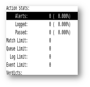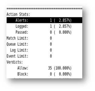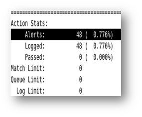 Figure 6.34: Snort’s Alerts Console Screen and Statistics