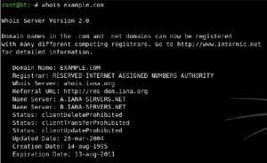 To enumerate whois we can use the whois command available on all Unix/ Linux OS as well as Backtrack: