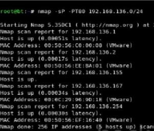 root@bt:#nmap -PM 192.168.136.167 – Net mask request.