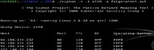 root@bt:#./siphon -v -i eth0 -o fingerprint.out